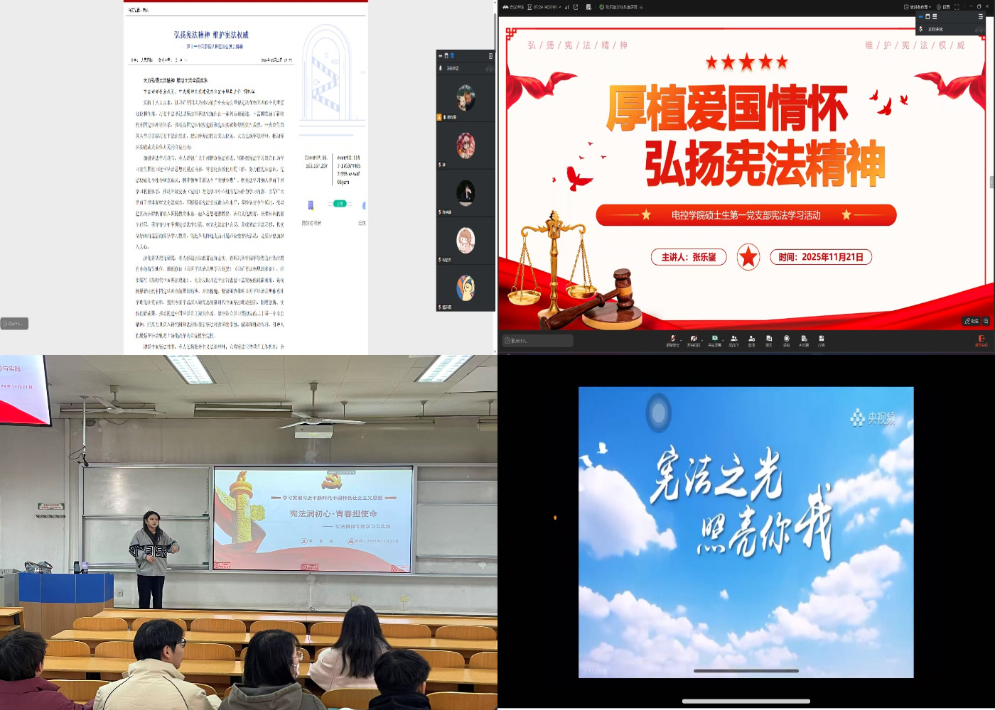 学生党支部开展了“学习宪法精神,担当时代重任”系列主题党日活动。各支部通过领学解读、观影研讨、晨读宪法等多种形式,教育引导广大学生党员深刻领会宪法要义,以奋发有为的姿态投身“十五五”建设,为法治中国建设贡献青春力量。