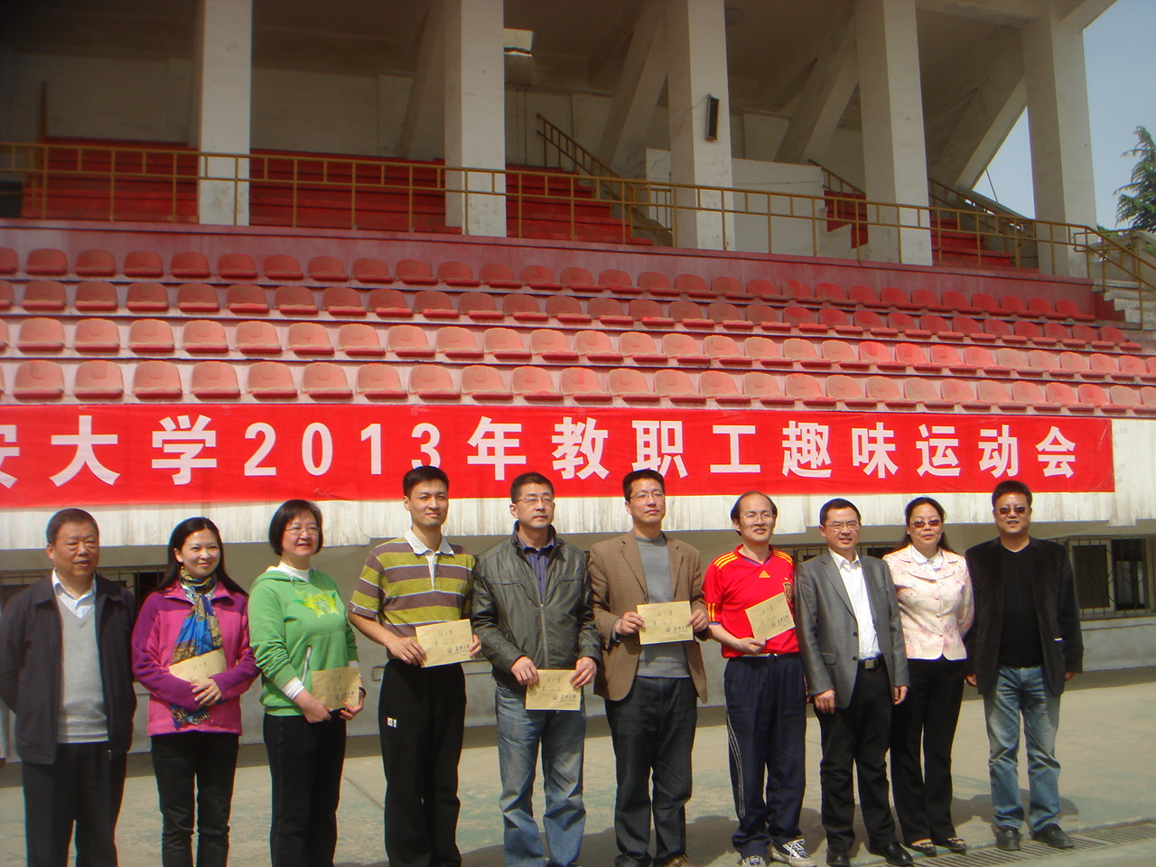 2013年4月11日上午,我校2013年教职工趣味运动会在校本部北院体育场举行,来自25个分会的27支队伍参加了比赛,污污漫画 教工获得优异成绩。 本次趣味运动会设置了定点投篮、沙包投准、50米接力赛项目。污污漫画 教工代表队获得了50米接力赛第一名的好成绩。学院领导巨永锋院长、李炬副书记等亲临比赛现场为运动员鼓励助威并且亲身参与。学院工会精心组织,党委副书记、工会主席李炬老师带领工会委员在比赛期间坚持为运动员做好后勤服务工作。 广大教职工踊跃参与,运动员团结协作,奋力拼搏,其他教工为运动员呐喊加油,为他们的精彩表现喝彩鼓掌。