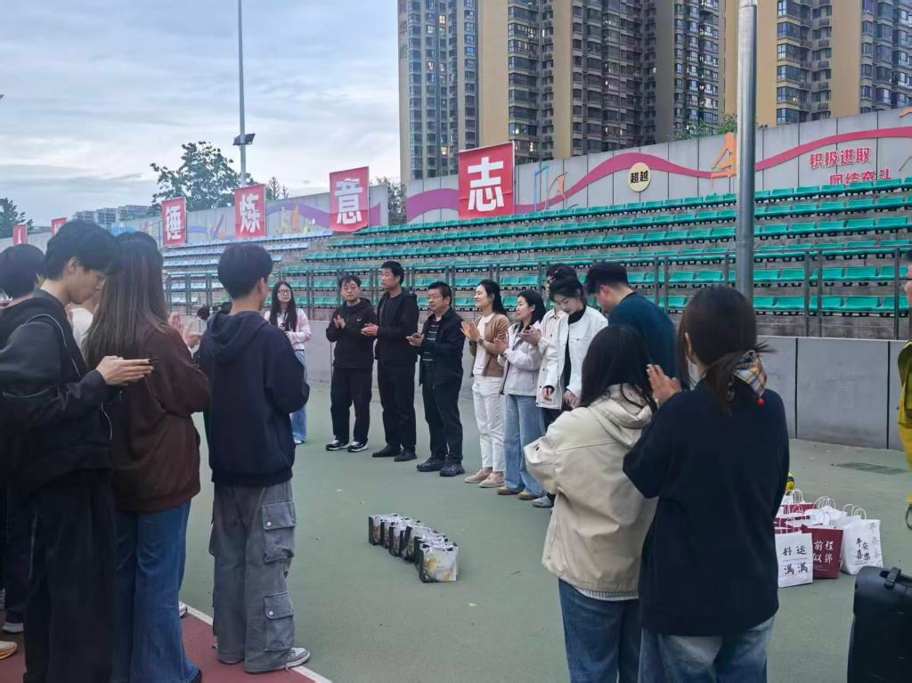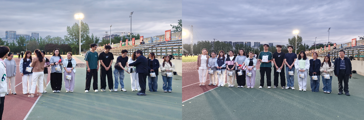 党委书记、院长闫茂德,院党委副书记高婷婷及全体辅导员来到北校区朝晖运动场慰问学院2026年春季运动会备赛运动员并指导训练。