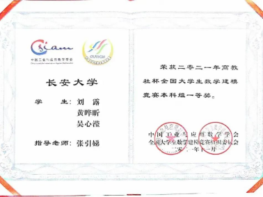 基于在子计划及课程设计中积累的宝贵经验,刘露同学在2021年年初参加美国大学生数学建模竞赛,开发衡量音乐影响力的模型,比较音乐及其流派间的相似性,量化音乐演变方法。在有所限制的短时间内对所给问题进行解题、寻找合适算法并对其进行优化、编程、结果分析、论文撰写等,在第一次参加该类竞赛的前提下一举拿下M奖(国际一等奖)。同年9月,参加全国大学生数学建模竞赛,就制备过程中,催化剂组合及温度对乙醇转化率和C4烯烃选择性的影响进行探究,给出在不同温度条件下选择催化剂组合的方案并增设实验进行优化,提出基于正交实验法改进的华罗庚优选法,获得全国一等奖(第一顺位)。