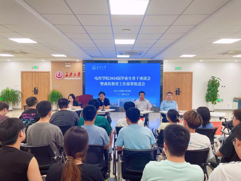 在北校区朝晖园示范性园区二层团体辅导室召开2024届毕业生骨干座谈会暨离校教育工作部署推进会。学院党委书记贺炳彦、院长闫茂德、院党委副书记李阳、毕业班辅导员和60余名2024届毕业生骨干代表参加座谈会。会议由辅导员高朋举主持。