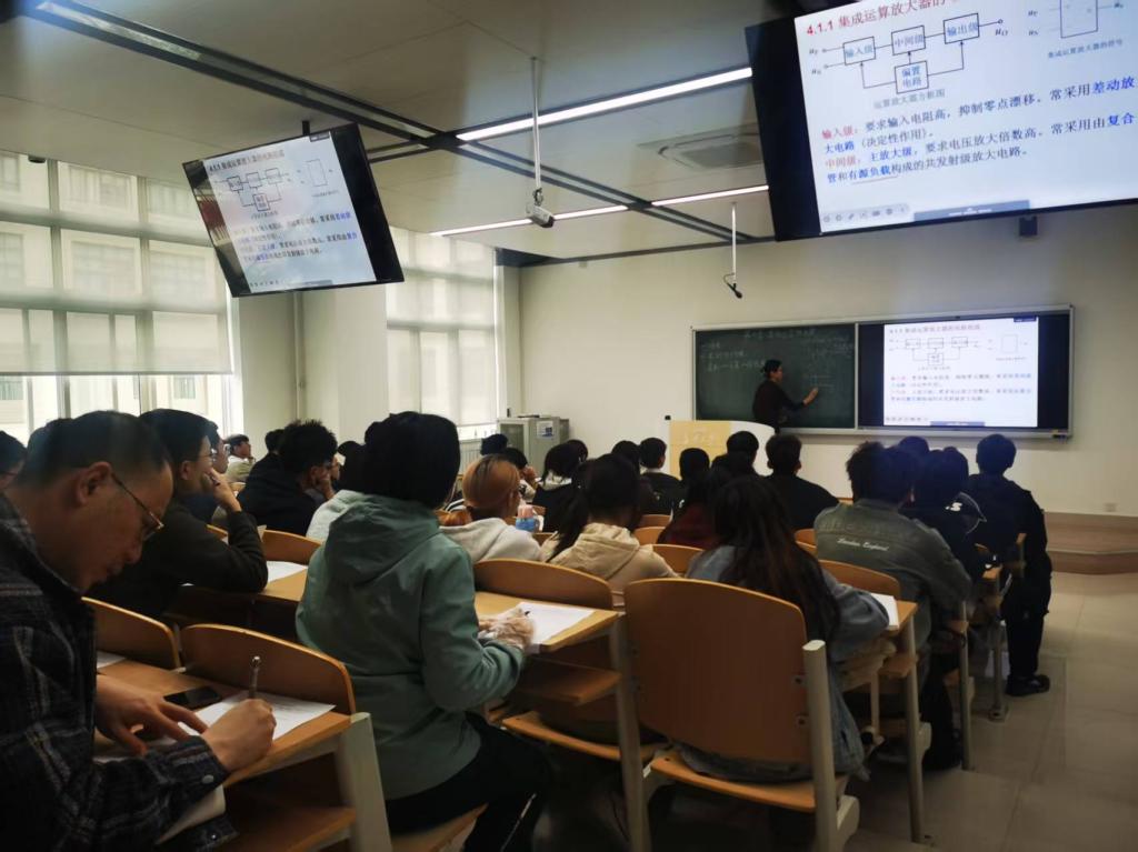 此次教学观摩活动采取的是现场教学观摩听课的方式,观摩听课的课堂是杨丽媛老师的模拟电子技术。学院组织了各系部近两年新入职教师在内的共15位教师参加了此次观摩听课活动。