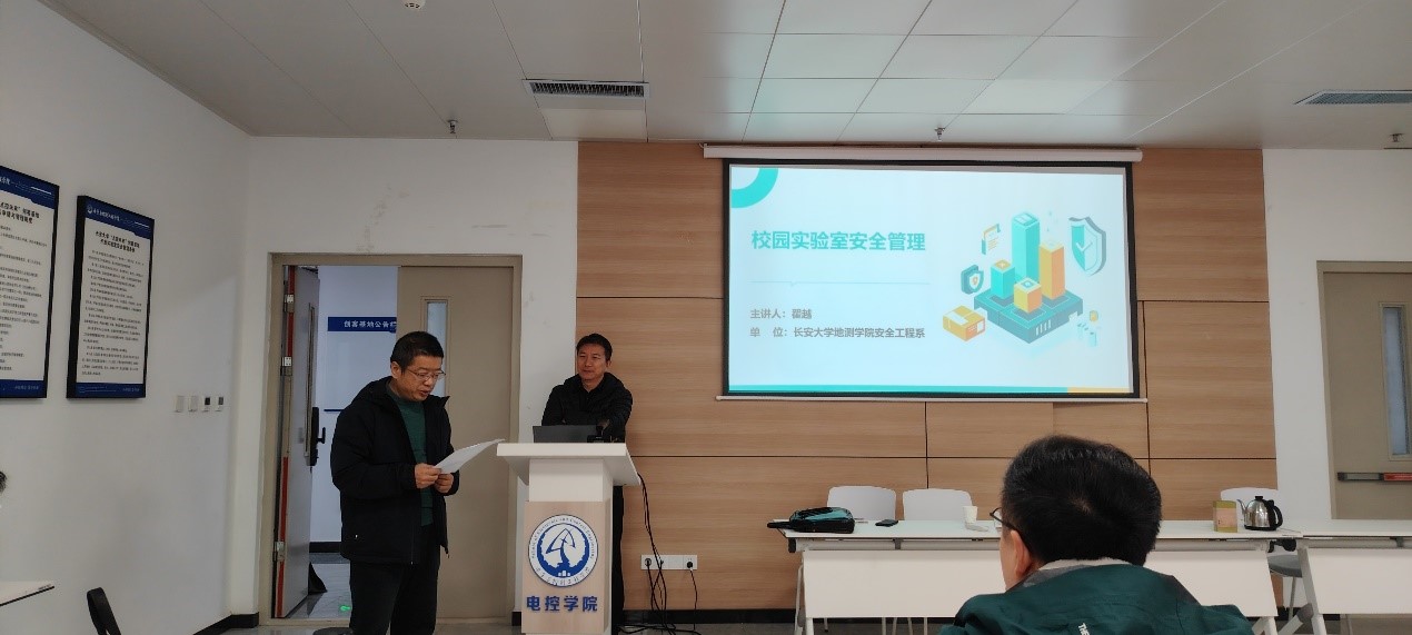 2025年“实验室安全文化月”活动安排,11月07日上午,学院特邀我校地质工程与测绘学院安全工程系博士生导师翟越教授在216室开展专题讲座。院长闫茂德出席并致辞,院内实验室全体教师及学生代表等参加了此次活动,活动由电工电子实验中心主任王会峰主持。